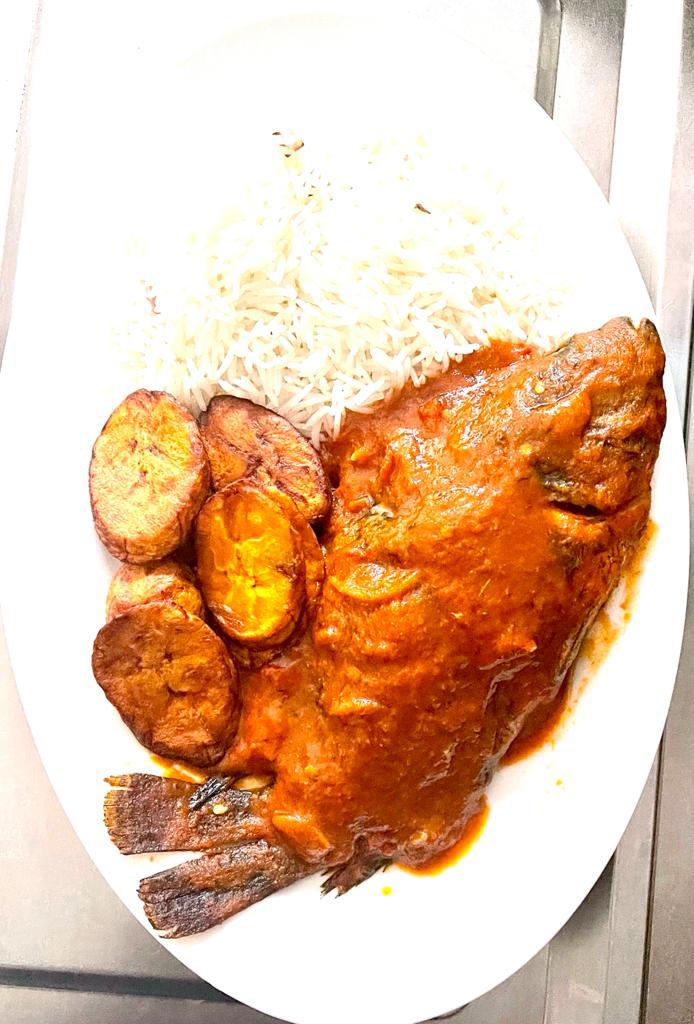 Steamed Long Grain Rice, + Fish stew quantity